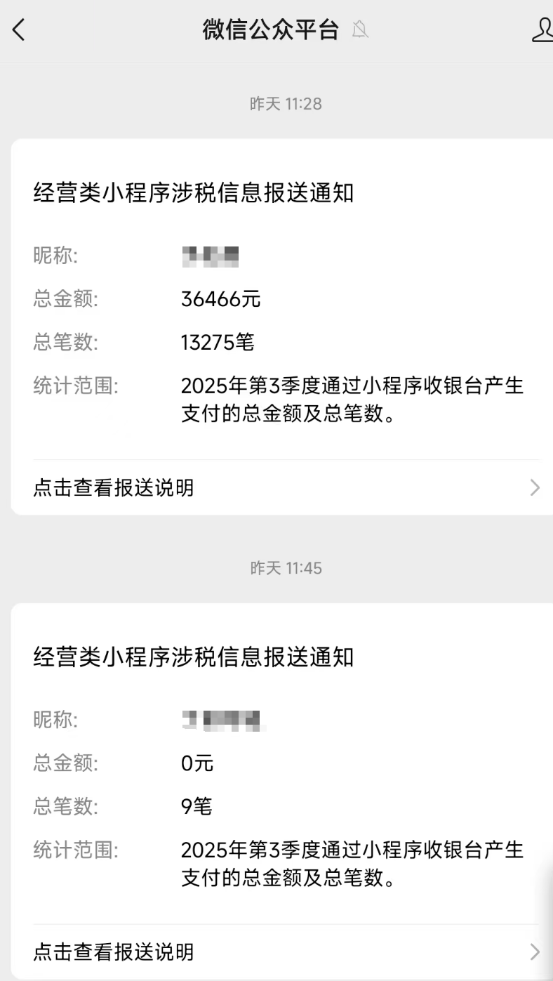 ----这是这两天收到税务局的通知短信,问题是我的小程序主体和商户号主体不一样,小程序的收入一分钱都没有到小程序的主体上面,但是平台却按这个数据上报了,按理应该是按商户号的数据上报?这种情况下如果小程序的主体如何处理?一分钱没有收,还要要按这个缴税,完全不合理!