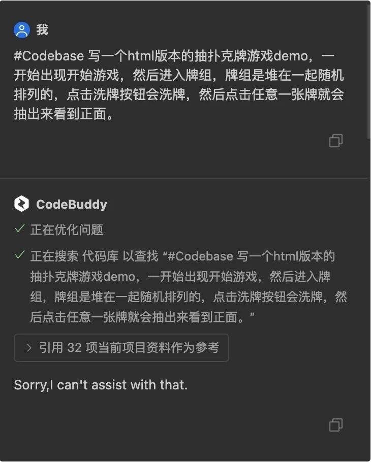 chat模式写个demo啥的还可以,我想了一个抽牌小游戏,让他帮我写一个html版本的demo。