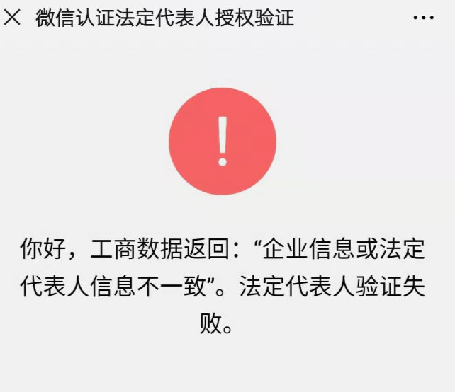 为什么出现“企业信息或法定代表人信息不一致”。法定代表人验证失败?