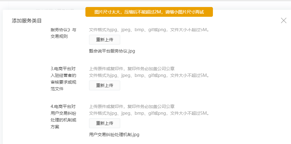 因为平台在申请电商平台资质并没有明确说明具体要求和规范,也没有在线客服可以咨询,只能一次次去尝试,非常崩溃,求尽快获得解决方案