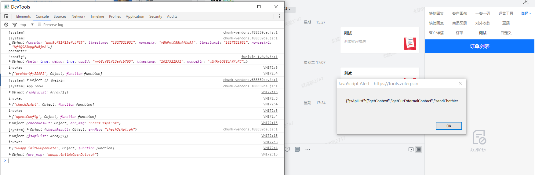 jsApiList: ['agentConfig', 'getContext', 'getCurExternalContact', 'sendChatMessage'], // 需要检测的JS接口列表,所有JS接口列表见附录2,