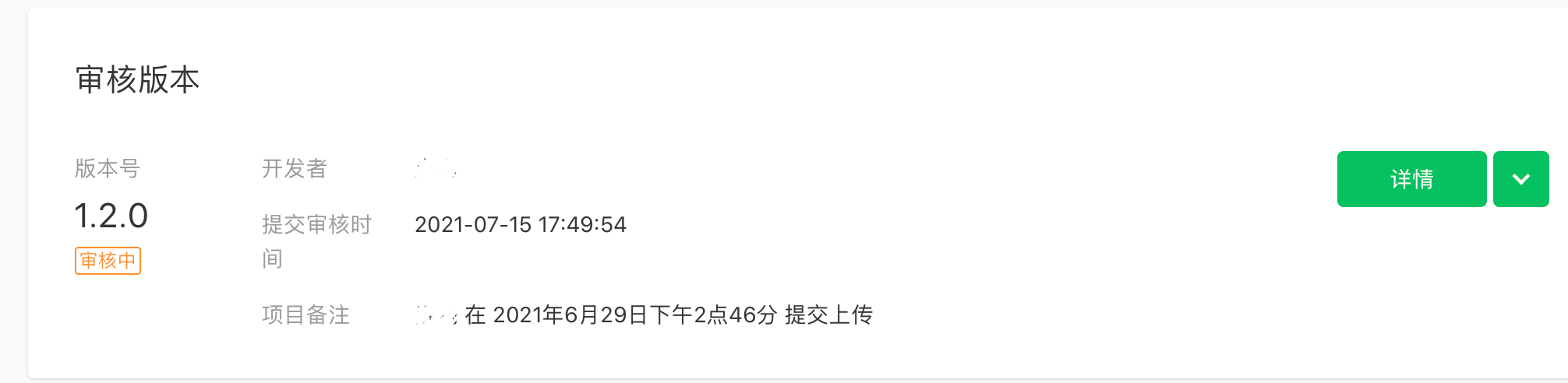 审核类型:小程序代码审核 提审时间:2021-07-15