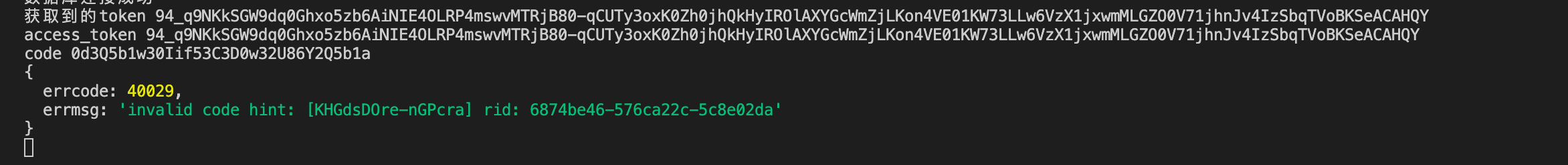 前端获取到code没有进行任何操作,给到后端,后端获取accessToken也正常,获取手机号传递的code也正常,但是报错40029