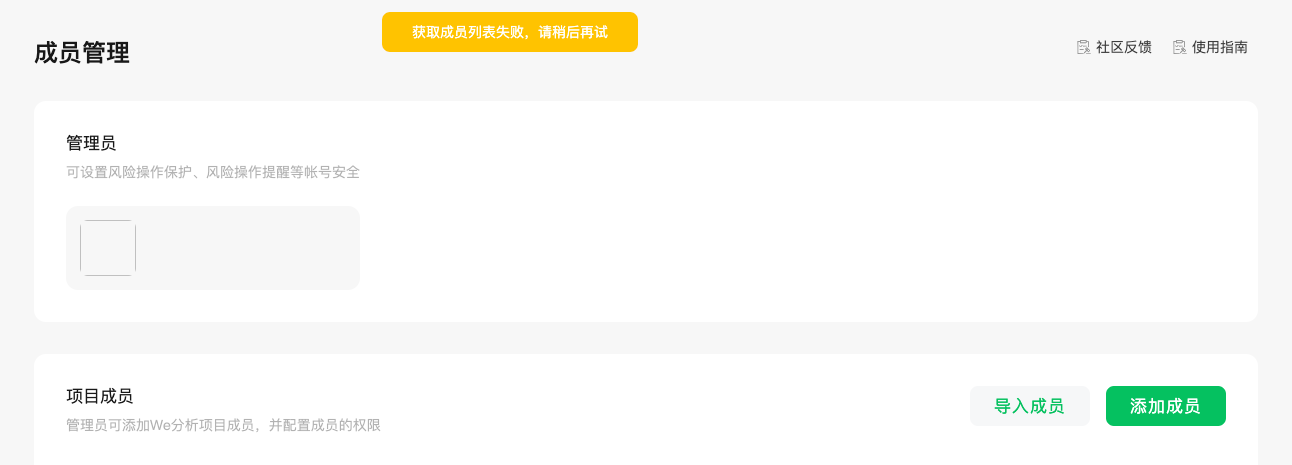 现在成员管理打不开了,提示“获取成员列表失败,请稍后再试”