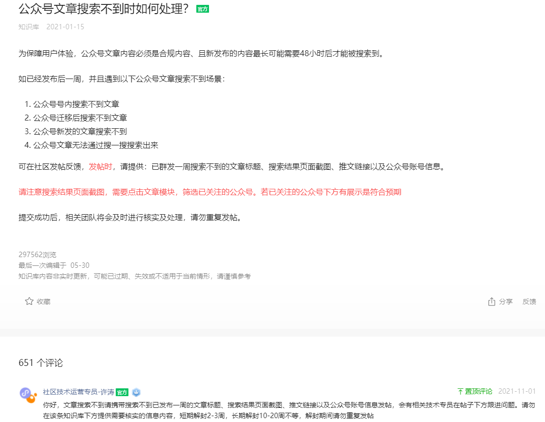 公众号发布的文章,搜索文章标题这几天突然全都搜索不到了,请问是什么原因?