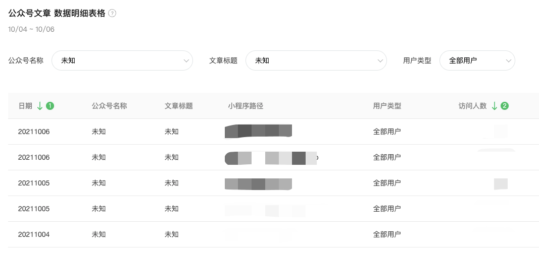 1、小程序的渠道来源,有很多未知的公众号及文章来源是为何啊?现在访问基数很大,出现此数据占比较大。