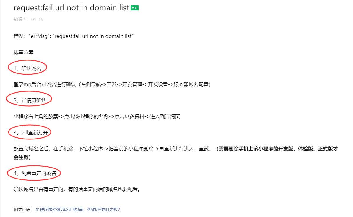 本地开发版本(不勾选‘不校验合法域名’)没问题,一切正常,线上正式版本就会报request:fail url not in domain list,体验版非调试模式下也同样会报request:fail url not in domain list,但是如果开启了调试模式就没问题,换了手机,也清除了缓存,小程序也全部删除重载过包括体验版、开发版都删除了,重新进入线上版还是一样报这个错误