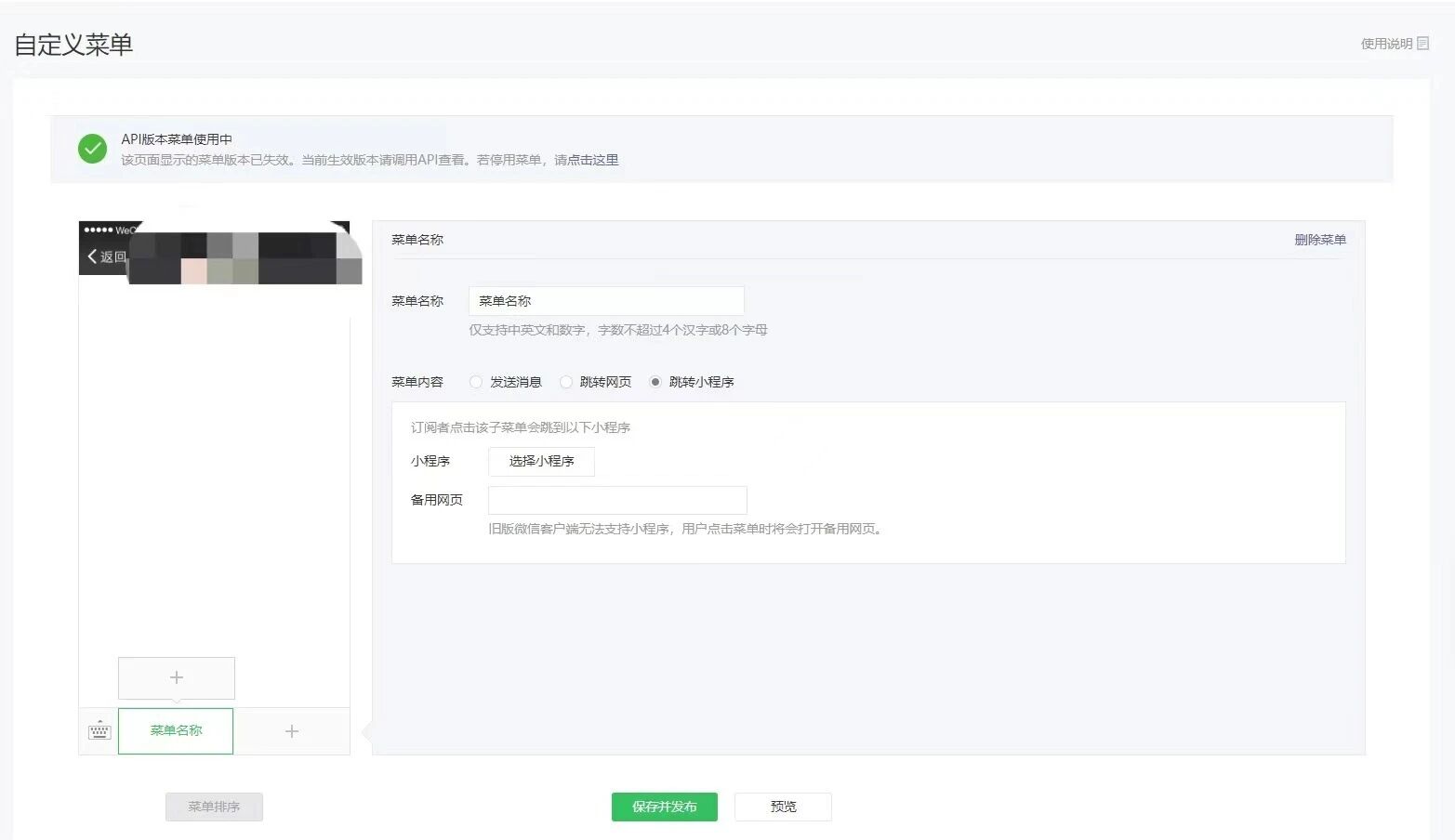 需要改自定义菜单,并且保存后生效,24小时内生效,一般都会实时生效。修改之后取关然后重新关注试下