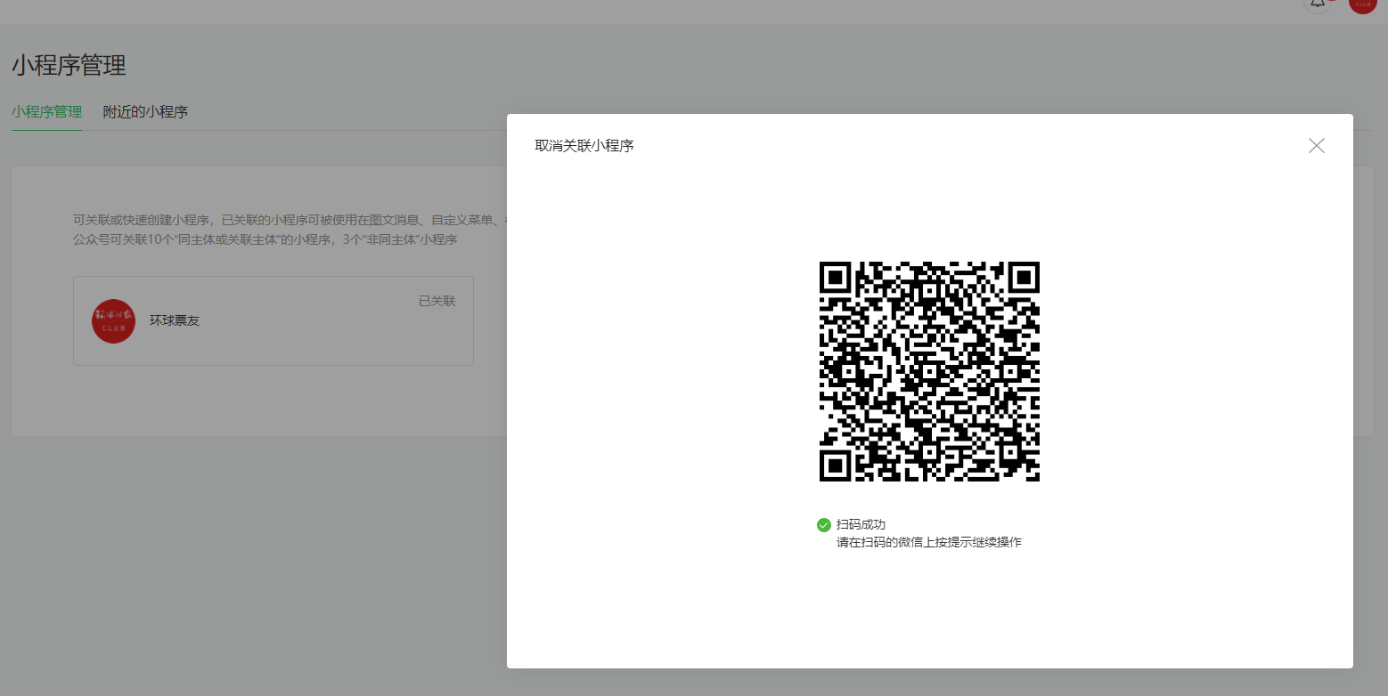 第一步:已经在小程序管理里取消关联了