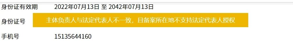 出现该提示是因为,所在地区,主体负责人只能是法人,请修改负责人为法人后重新提交备案信息