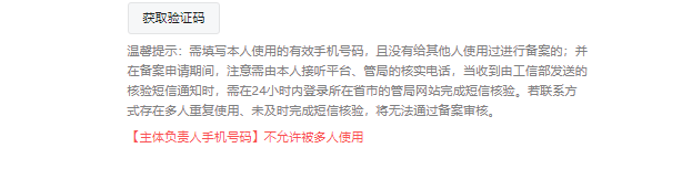 在平台备案系统中,人,手机号,应急手机号,邮箱均一一绑定,同一个人允许为多个小程序备案(同一主体下),可以提交一致的手机号、应急手机号及邮箱,但不能出现不同人共用手机号/邮箱的情况。