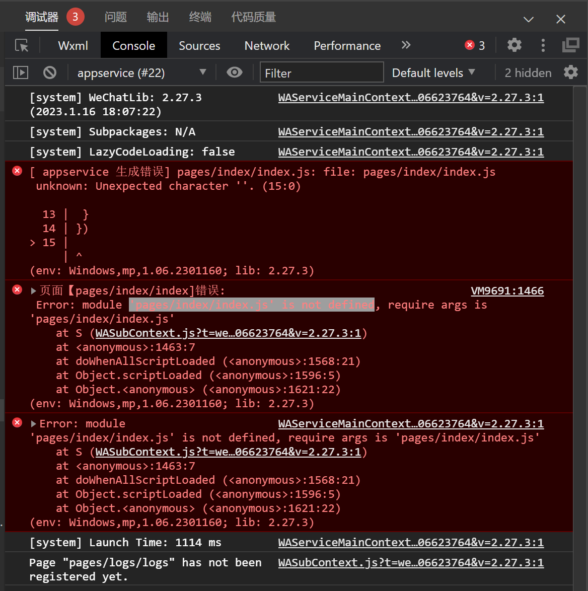 第一个error说明页面代码有错误