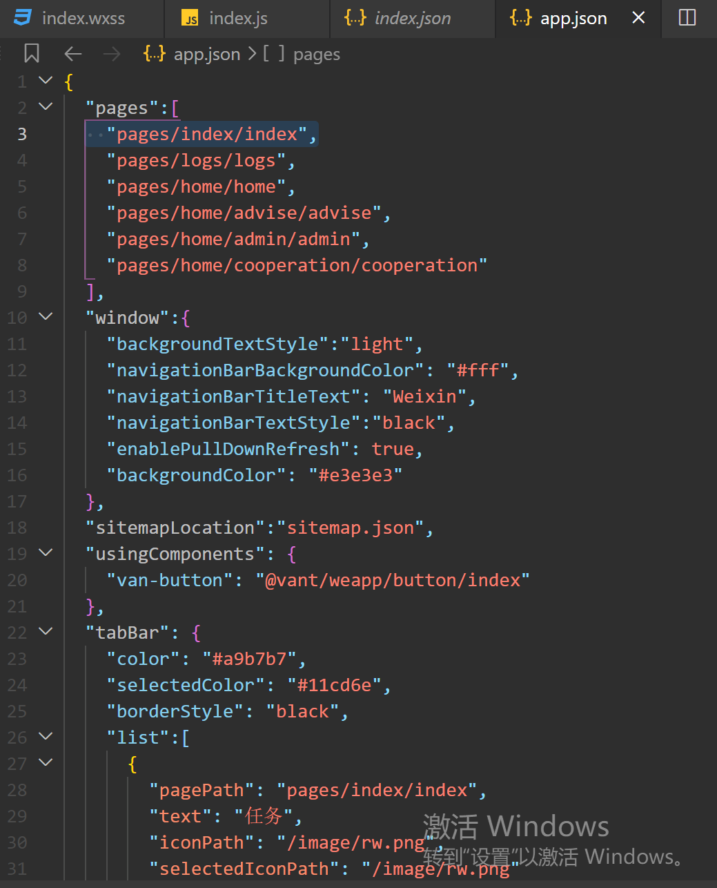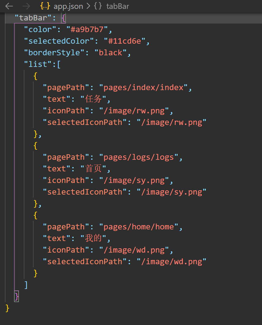app.json代码如下