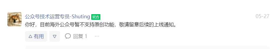 原创功能仅向国内主体开放,海外主体没有原创功能。