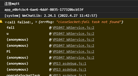 请问小程序开发者工具的报错call failed:, {errMsg: "closeSocket:fail task not found"} 解决了嘛