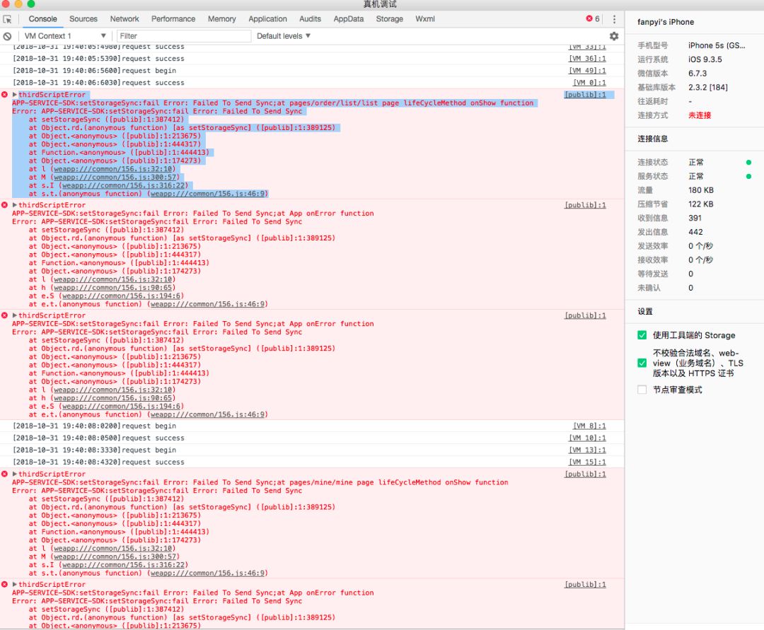 APP-SERVICE-SDK:setStorageSync:fail Error: Failed To Send Sync;at pages/order/list/list page lifeCycleMethod onShow function