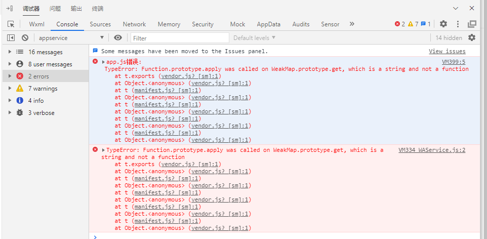 app.js错误:TypeError: Function.prototype.apply was called on WeakMap.prototype.get, which is a string and not a function。