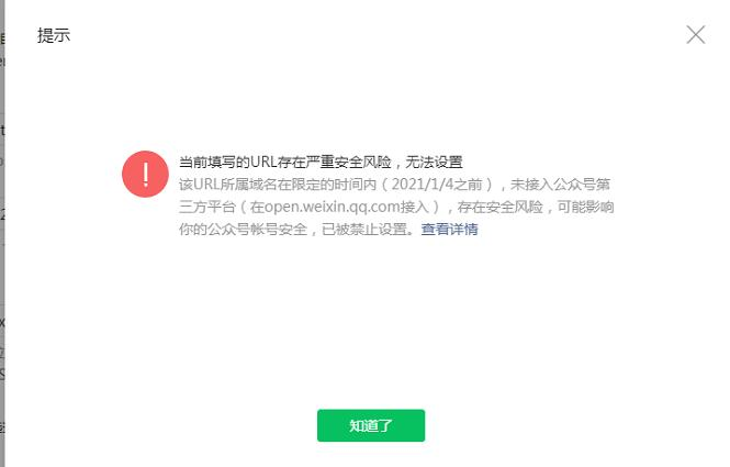 你好,可参考此帖子的回答「第三方平台全网发布已通过, 但仍会提示 URL 存在严重安全风险, 无法设置」这种情况该如何处理?