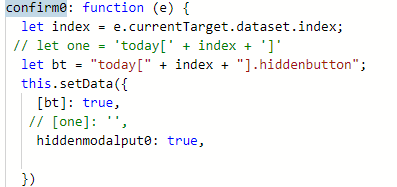 Only digits (0-9) can be put inside [] in the path string: today[undefined].hiddenbutton; [Component] Event Handler Error @ pages/alarm/alarm#bound confirm0