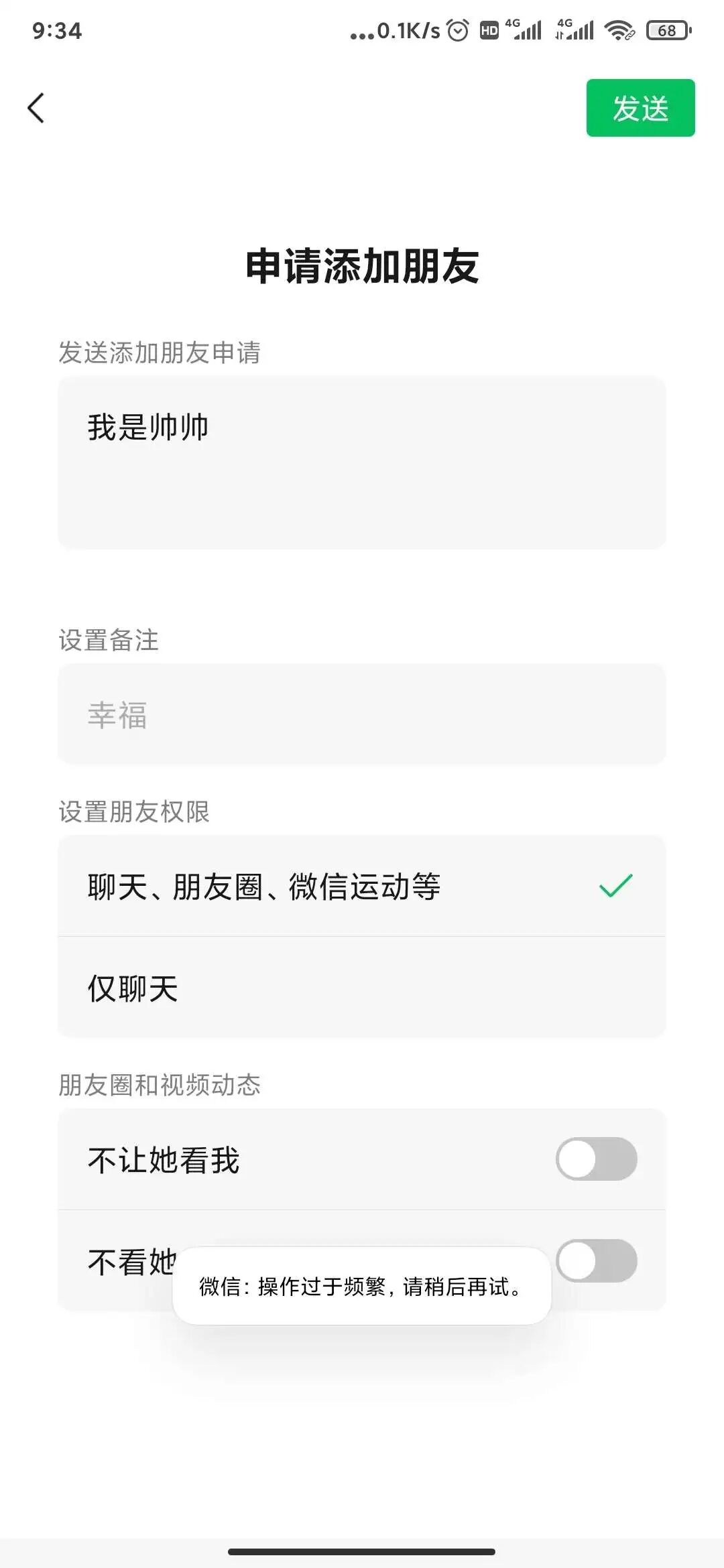 本人也遇到同样问题,30个小时左右了,还是无法添加好友,并且同一个手机登录的另一个微信并未加人也出现频繁现象,麻烦帮忙处理一下,万分感谢!微信号:QE18454145017。