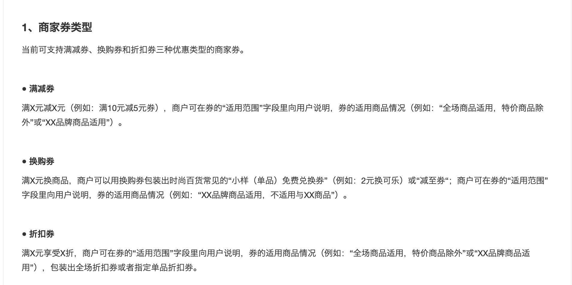 当前可支持满减券、换购券和折扣券三种优惠类型的商家券。