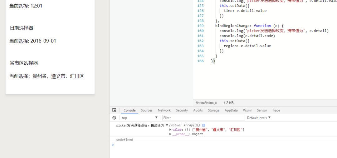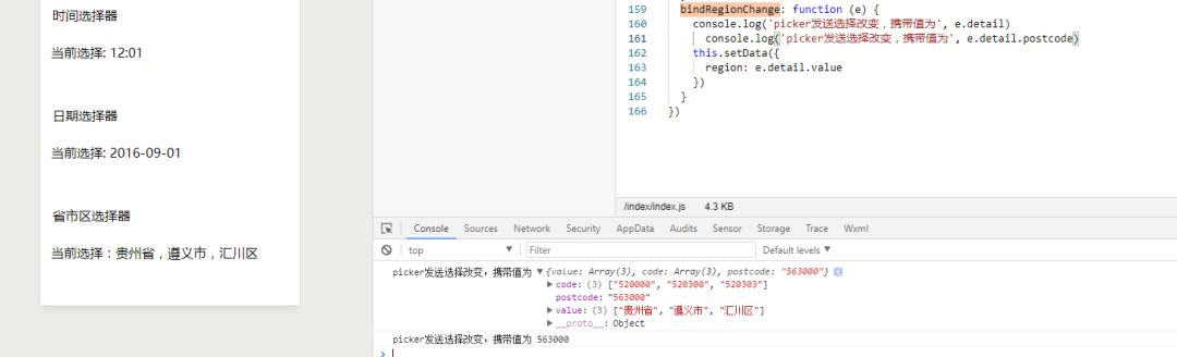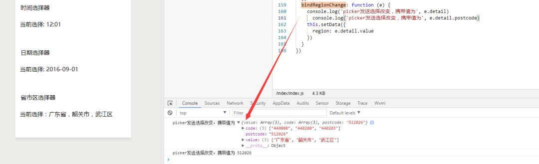 官方例子导入,输出e.detail,里面只有value没有 code, postcode。