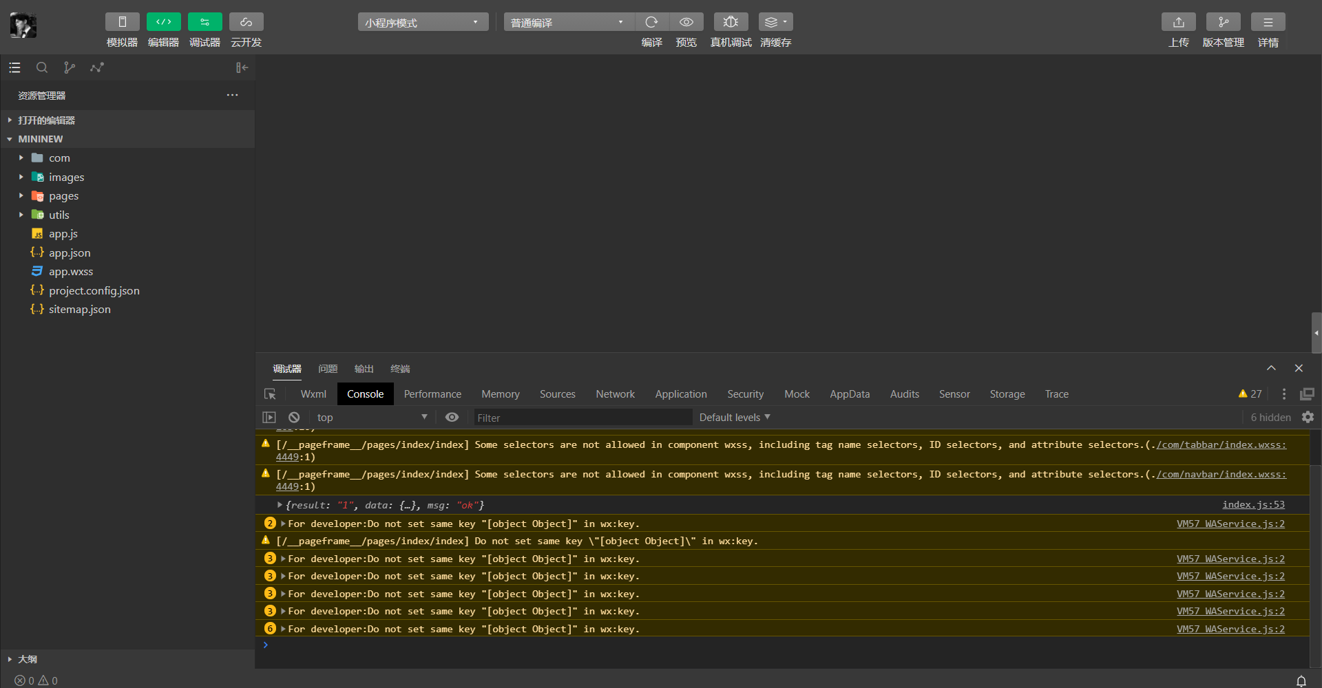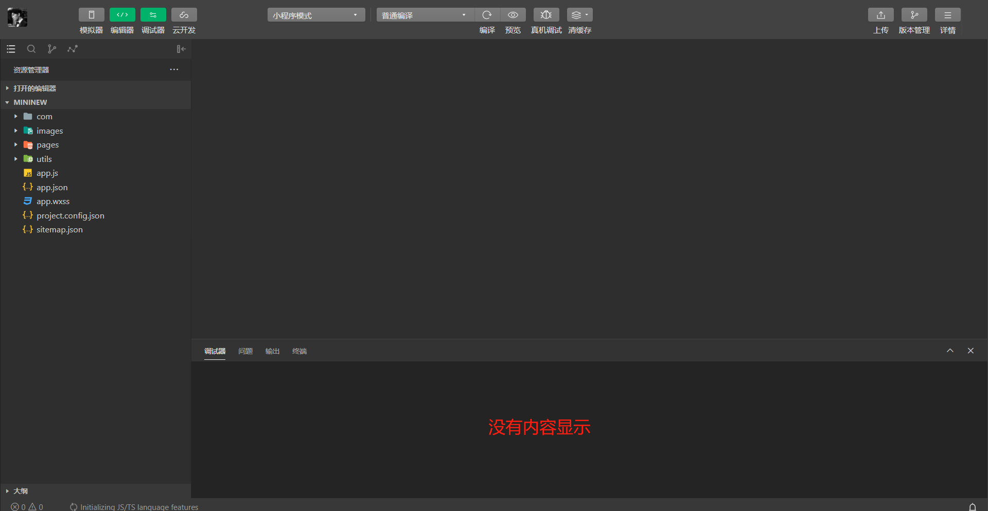 我这边的情况比较玄学,大概就是从固定任务栏那打开的话就是调试器没内容,但是从安装目录下找到微信开发者工具.exe点击启动他就有内容了,然后在打开一个项目的情况下,再将微信小程序.exe的快捷键固定在任务栏,关闭开始打开的项目,通过任务栏点击打开的微信开发者工具的调试器变正常了(调试器有内容了)