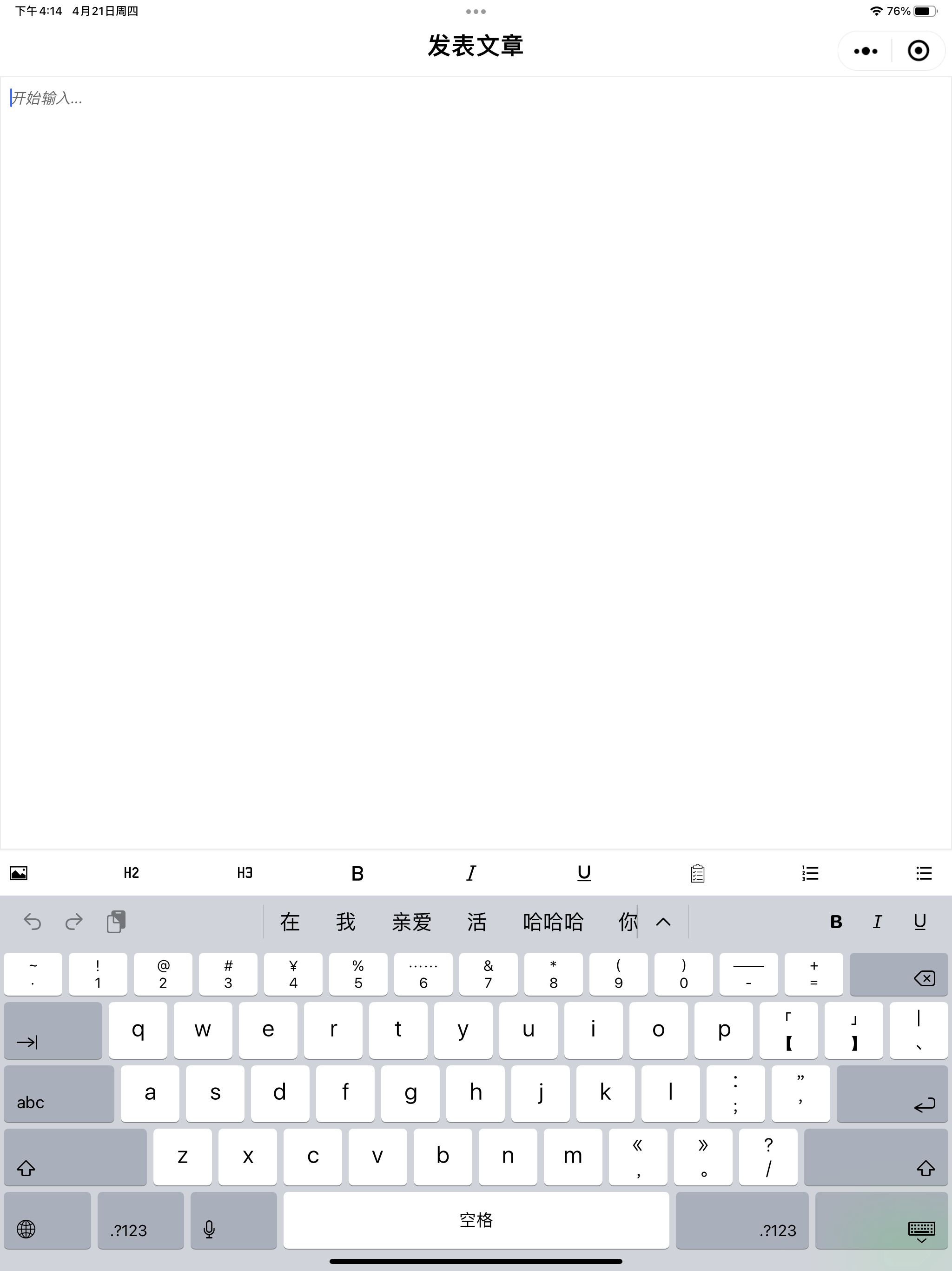 即使使用组件editor的官方demo,在IPAD横屏、分屏下监听到的键盘高度也是错误的,导致工具栏被键盘遮挡。