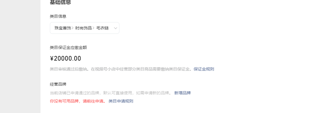 视频号品牌已经授权 但是不能在申请饰品类目时 提示品牌不可用