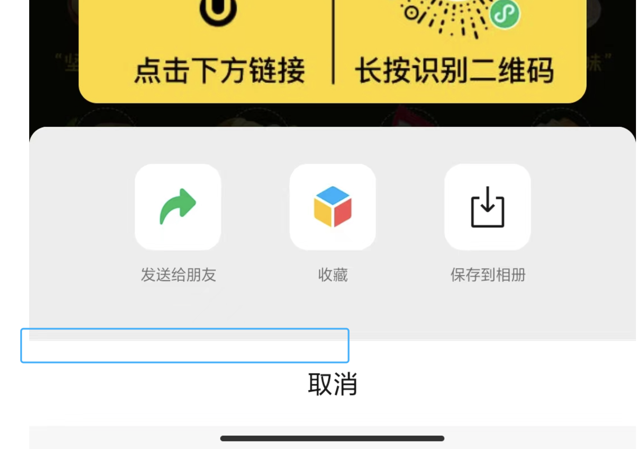 调用wx.showShareImageMenu唤起图片弹窗,底部有1px灰线,灰线上方还有1px白色