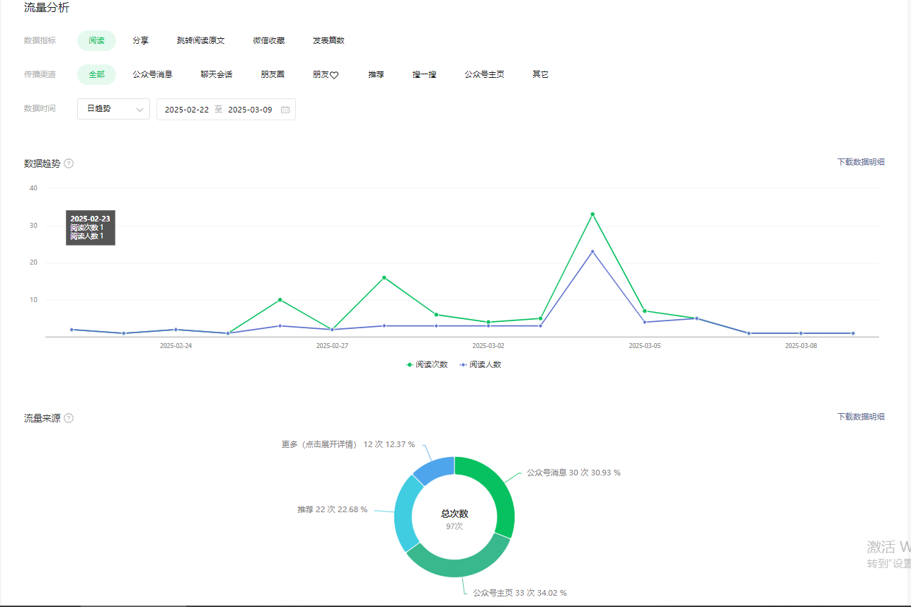 帐号是24年4月份注册的,但一直没有启用,直到今年2月份开始发文,开始几天发的图文,还有两位数的阅读量。之后一直坚持日更,截止昨天,连续日更了24天,但从半个多月前,日推荐量基本都是零,只有两个粉丝偶尔会进来看下文章。