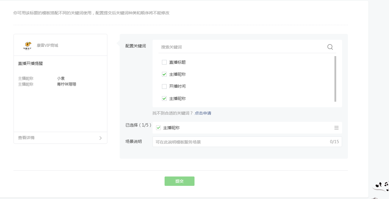 【直播开播提醒】订阅模板有两个“直播昵称”