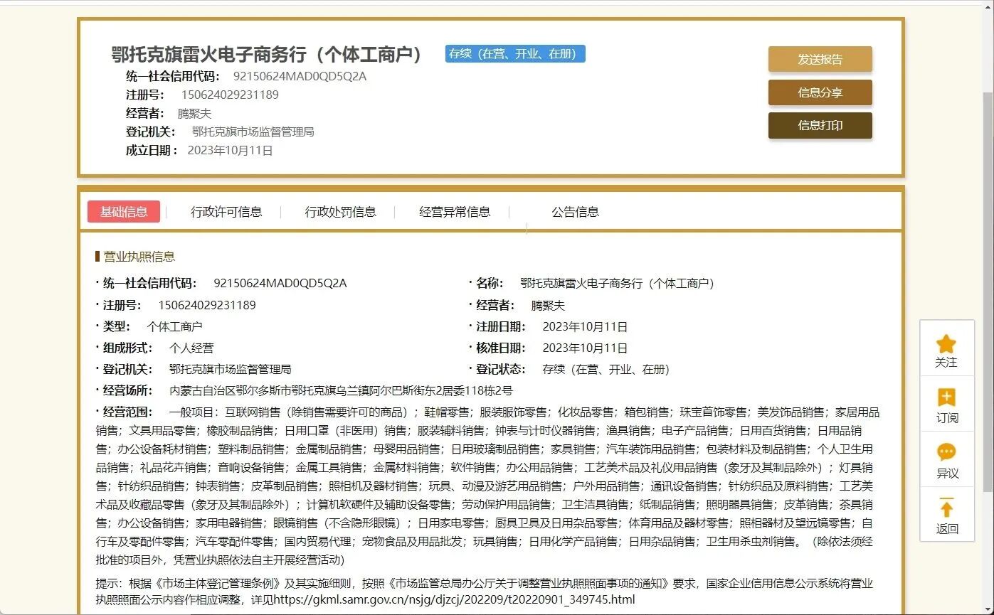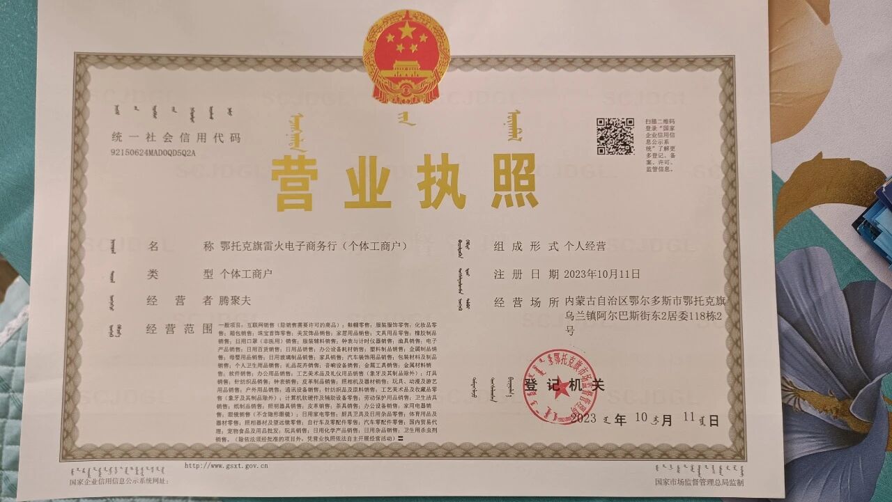 公司名称:鄂托克旗雷火电子商务行 (个体工商户)