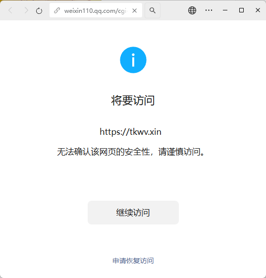 https://tkwv.xin/ 提示安全风险 域名已备案 已实名 没有任何违法违规违反微信外链相关规定协议内容 且里面内容真实有效 自查无问题 若有问题请说明,本人立刻进行整改,谢谢领导。