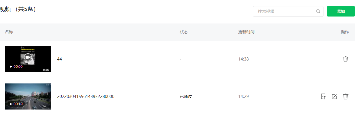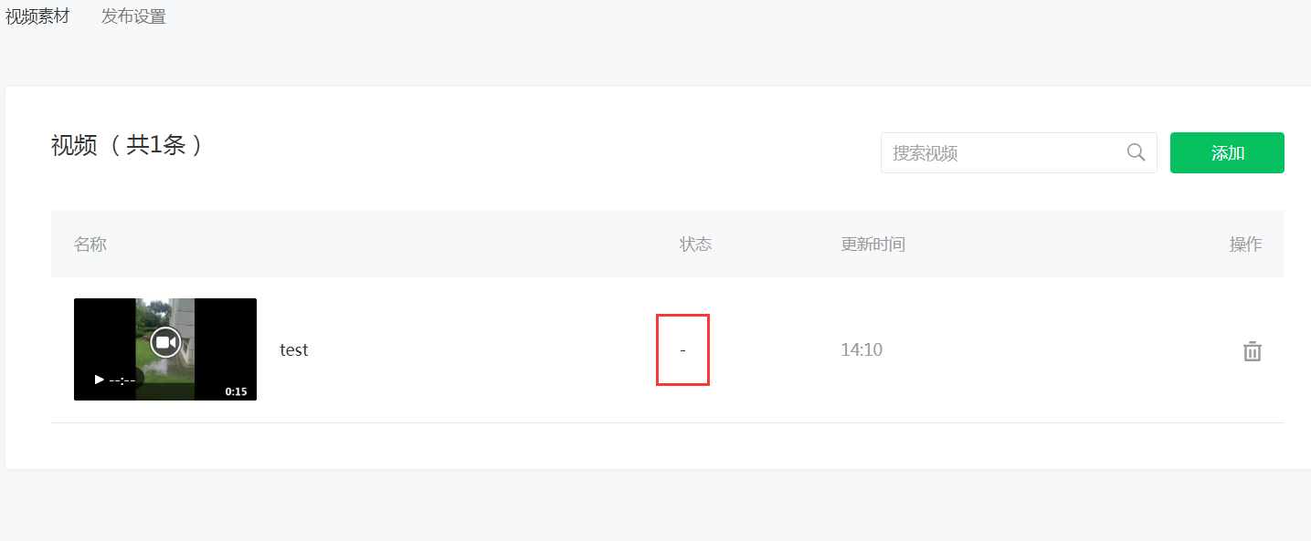 你好,目前素材管理接口里,视频素材的上传没有送审,在微信公众平台后台的素材管理列表展示状态会异常,不能用于群发等常规场景。若目前有视频上传和使用需求,建议直接通过微信公众平台后台上传视频。公众号视频上传相关指引可查阅: