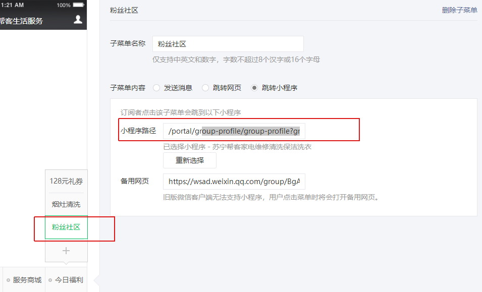 按照操作已经添加到了公众号菜单及自动回复,显示无法跳转