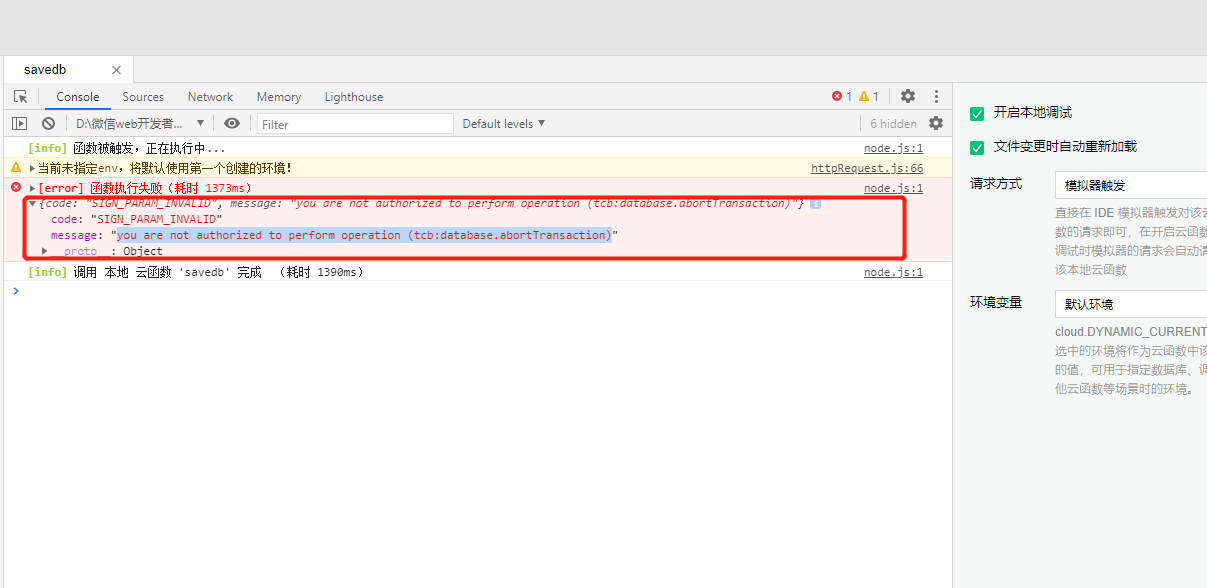 环境共享下要求向资源方的数据库开启事务,报错:you are not authorized to perform operation (tcb:database.abortTransaction)