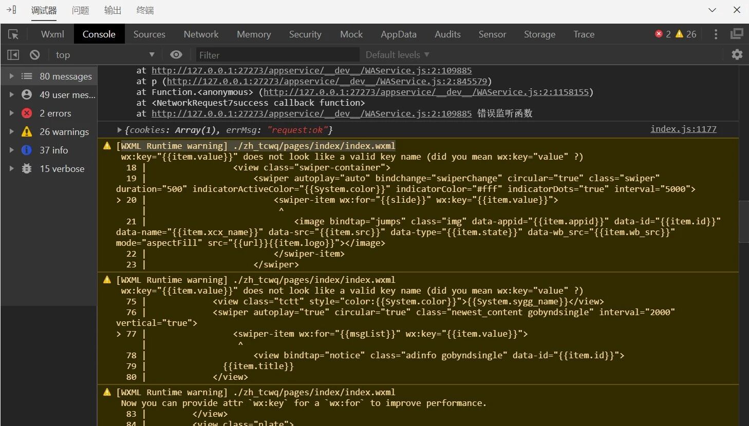 这是警告, 上面说的很清楚了 wx:key的问题 不需要加{{}}