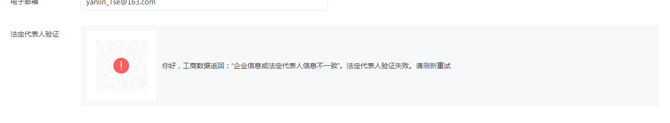营业执照,法人微信,法人手机等信息都是齐全的,有在工商局查证,但是在注册时就是一直对不上