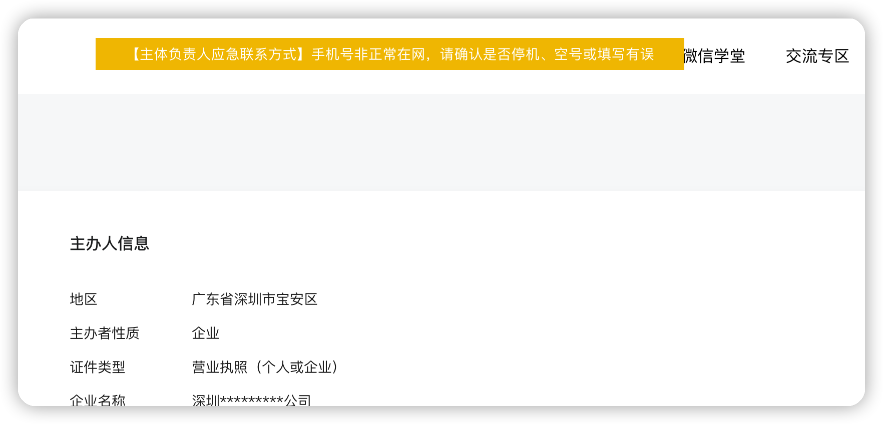 你好,请私信提供完整界面报错界面和主体负责人应急联系号码,小程序APPID以便核实。