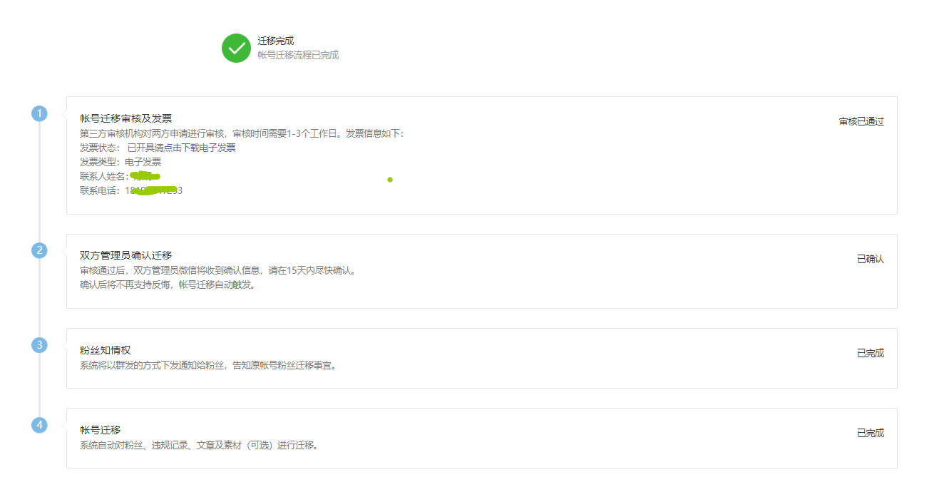 公众号主体迁移成功后。