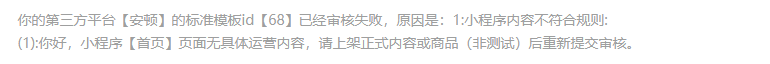小程序标准模板审核同一个原因被多次拒绝,我们这边已经排查了,不存在驳回原因中存在的内容,生成的体验版中,都是显示正常的,或者能不能给一下具体那个页面有问题
