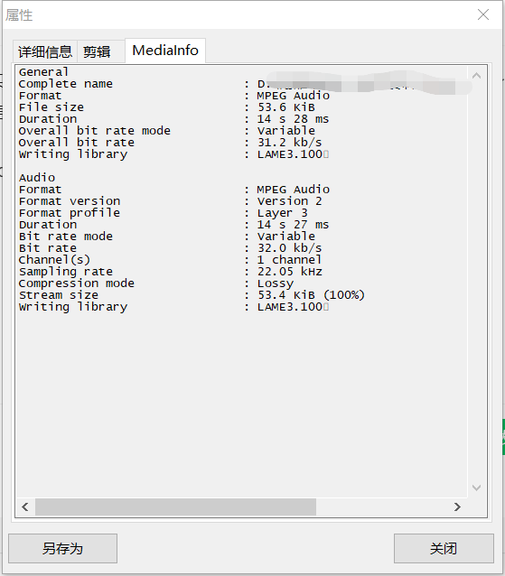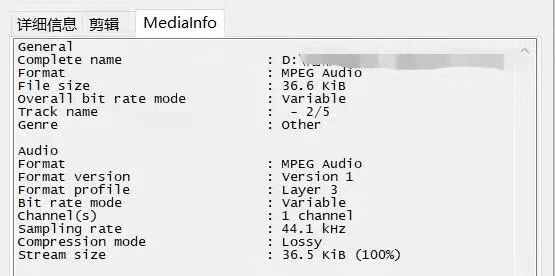 2,用音频编辑软件转换一下音频,比如调整一下采样率等等(我用的是BatchEncoder,一个开源音频转换软件)。转换后的文件duration信息就被添加到媒体信息了,其他媒体信息也发生了一些变化: