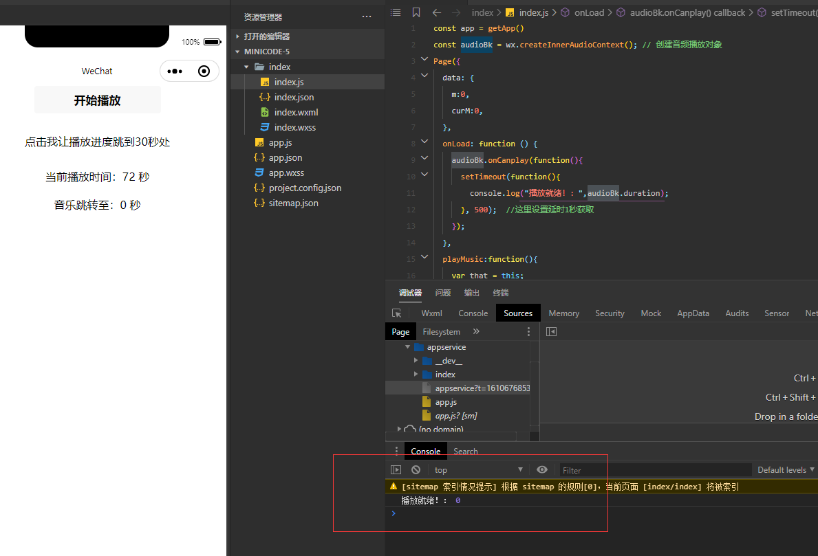 innerAudioContext.onCanplay(function getDuration() { let intervalID = setInterval(function() { console.log('onCanplay', innerAudioContext.duration) if (innerAudioContext.duration !== 0) { that.duration = Math.ceil(innerAudioContext.duration); clearInterval(intervalID); } }, 500); 我最后采用的这种方法,基本上在第二次调用时就能拿到正确的值了。小程序这个bug真的是蛋疼。