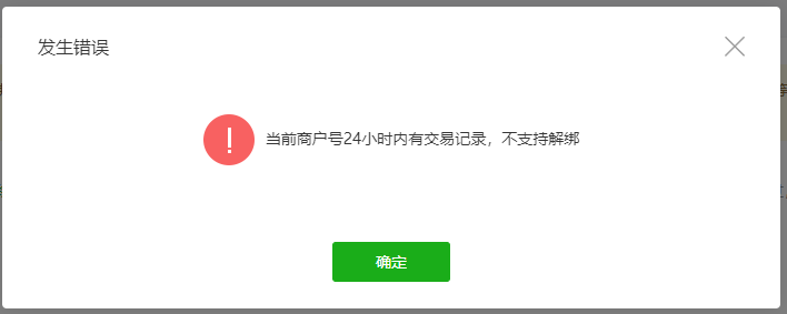 在小程序主体迁移,变更商户号的时候提示”该商户号24小时内有交易记录,无法解绑商户号“