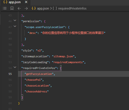 wx.getLocation({ type: 'wgs84', success (res) { console.log(res) } })json中声明的函数和调用函数不同,就会报这个错误