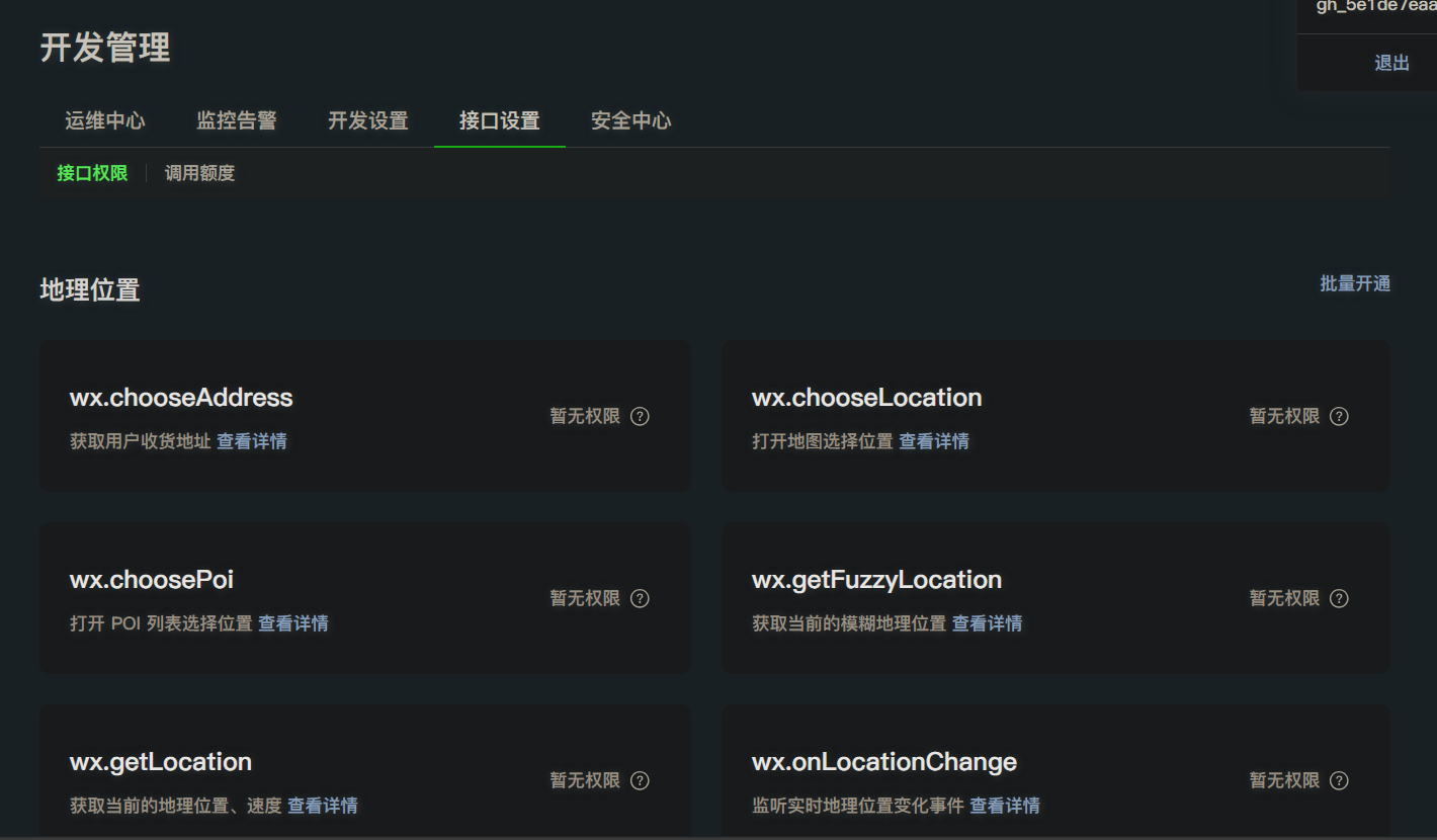 message:Error: 系统错误,错误码:-80424,error: [getFuzzyLocation] is not authorized [20240217 21:00:48][wx3bdcd37ff8ddb2a2]