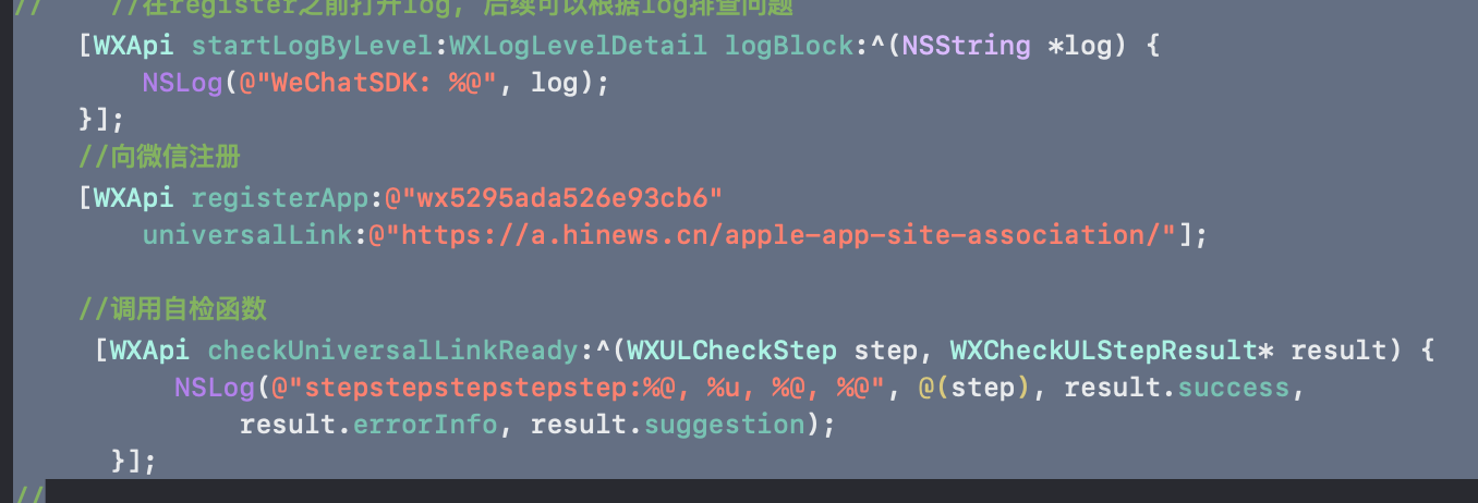 plist也配置了 证书也配置了Domains也配置了 就是在调用自检的时候启动了微信显示正在连接然后就会到App就什么也不操作了,这是什么回事,我去掉SDK也重新引入同样也是这个问题
