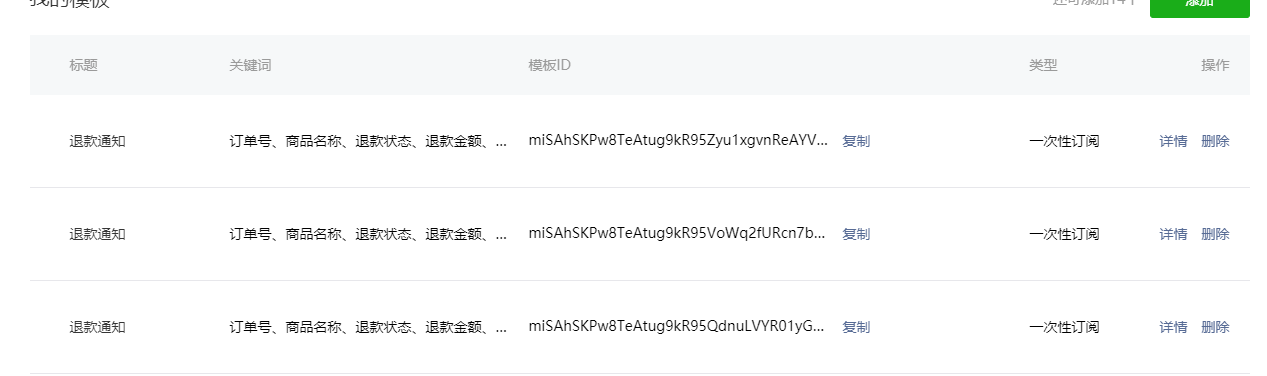 subscribeMessage.addTemplate在代码使用Post调用返回错误“远程服务器返回错误: (503) 服务器不可用。”,但是调用后在后台里看调加了三条相同的模板。
