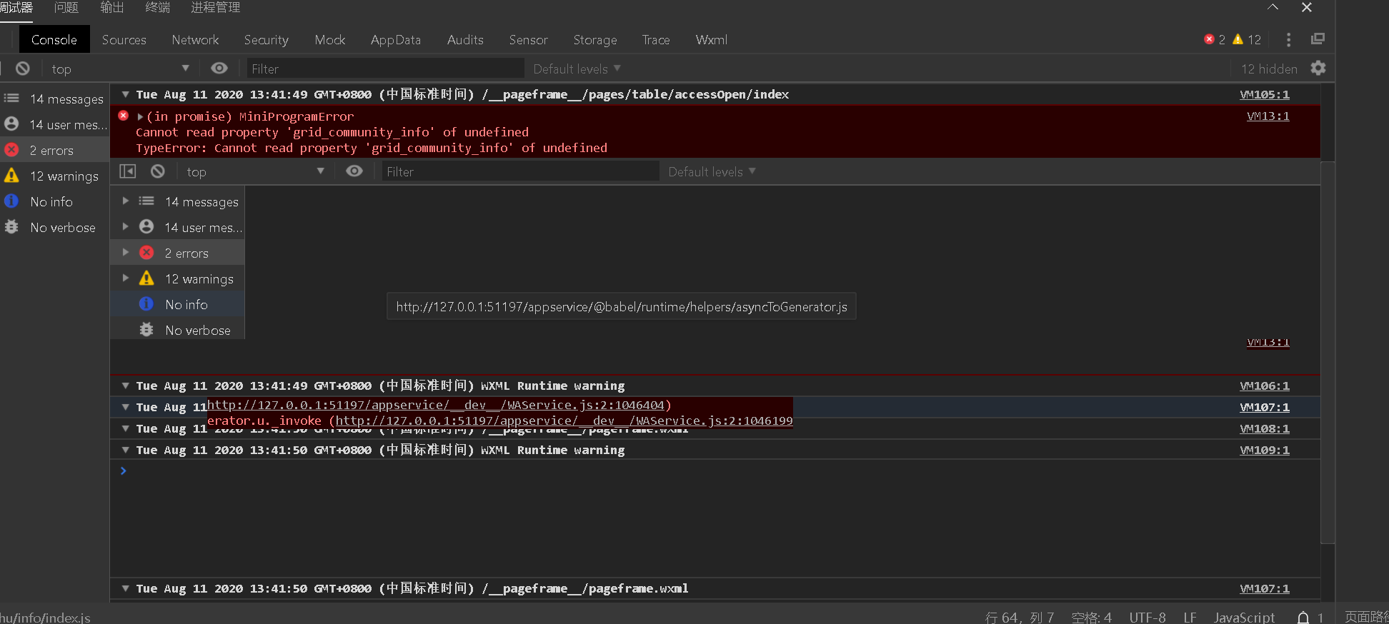 现象:调试器在显示日志的时候显示不完全,最底部的日志会默认不显示,其实是有的,鼠标移入后可显示部分,具体如下图所示